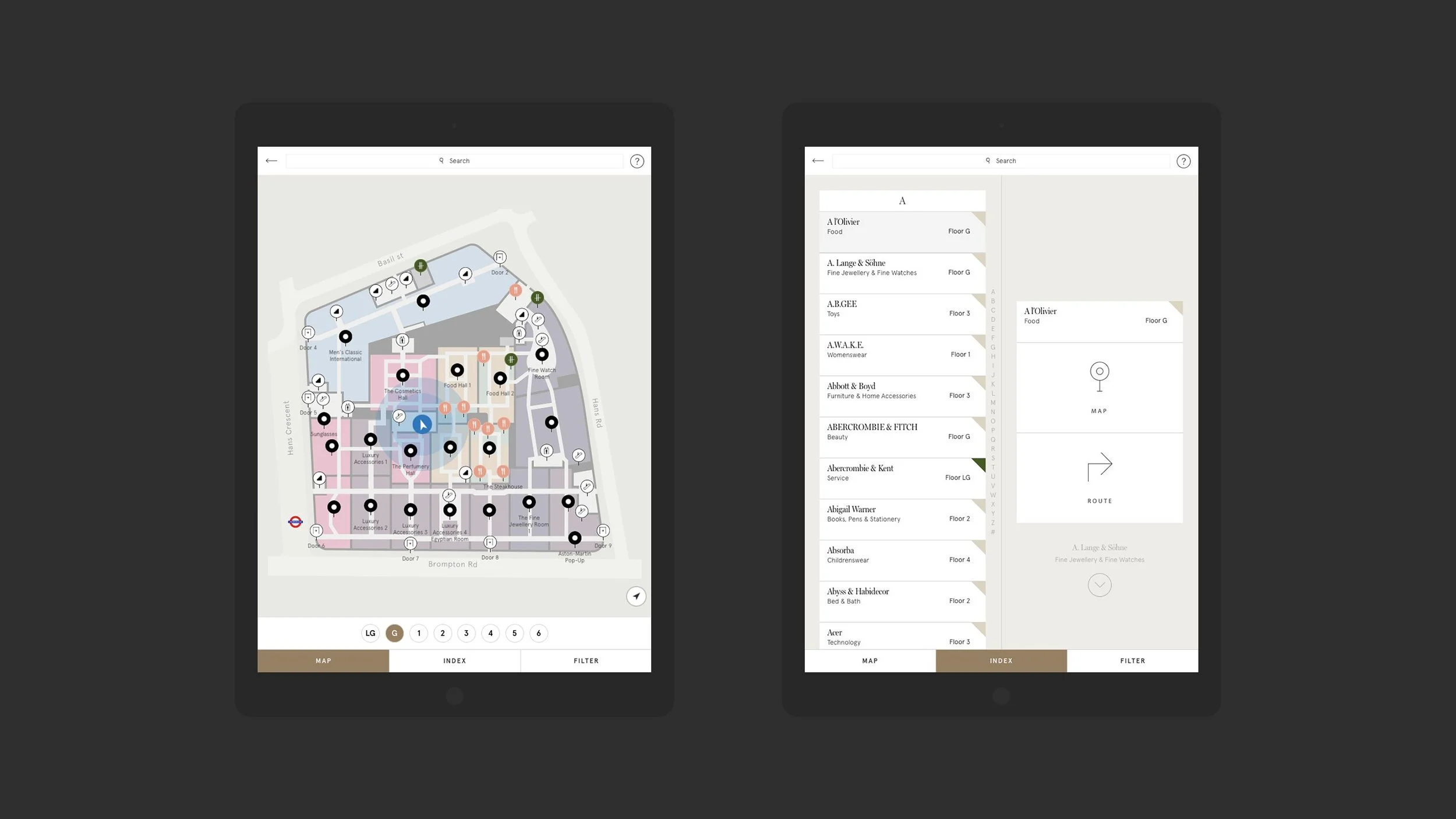 Collaborating with AndAgain and Pointr we helped launch a ‘world-first’ indoor store guide app for World's most famous luxury retailer. Utilising almost 1,000 beacons around the store, the app allows customers to navigate around the five acre floorspace, easily locating departments, brands and points of interest.