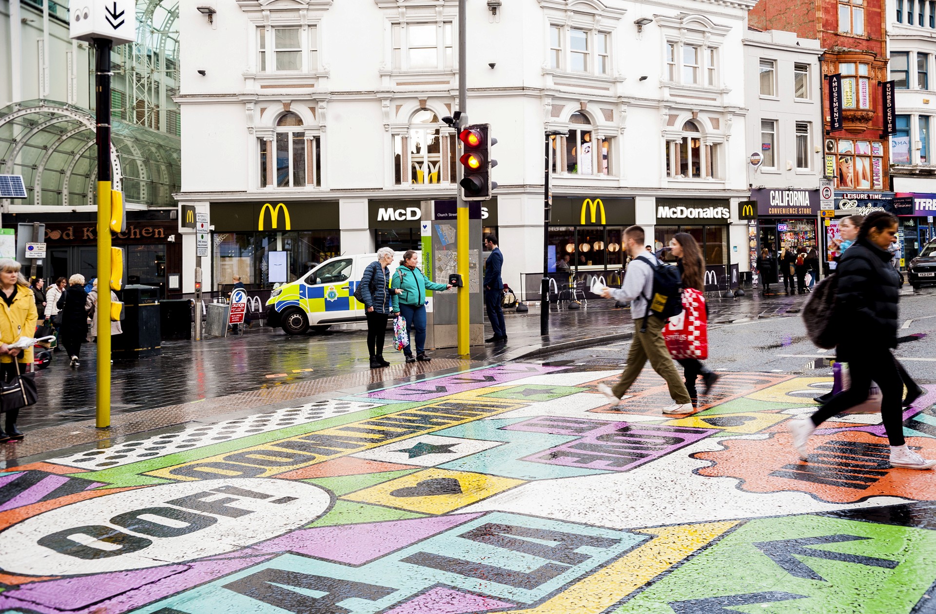 Working with So-Mo, we helped shape the campaign’s visual identity and environmental design – using colour, tone and placement to deliver subtle prompts that encouraged safer crossing behaviour without relying on enforcement or fear. The trial in Liverpool saw a 14% increase in correct crossing use, proving that design can influence everyday decision-making in meaningful ways.