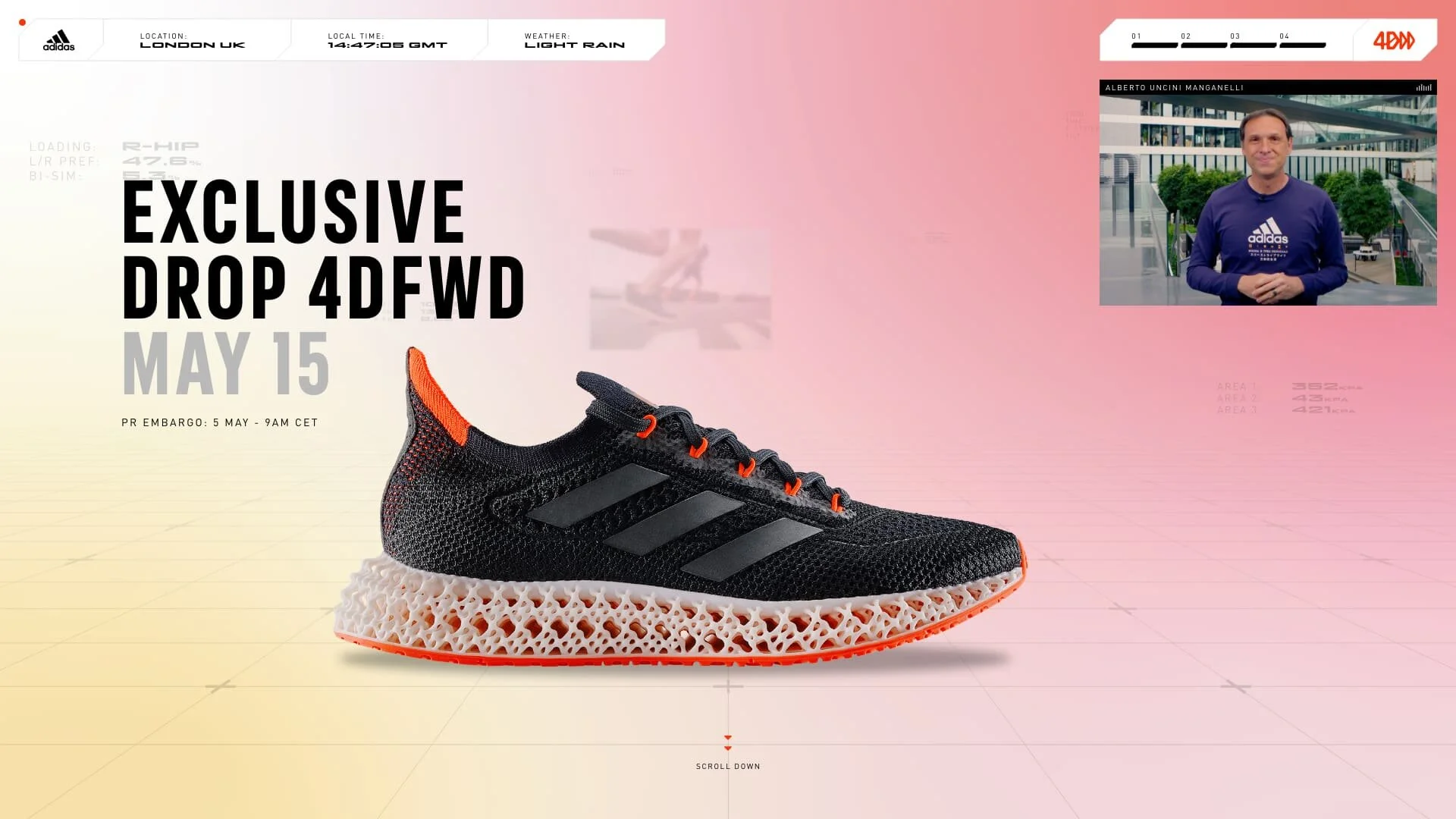 Working collaboratively with Tokyo Digital, Amplify and Inertia, we produced a narrative-led, fully interactive mix of video, CGI, multi-directional audio and 3D exploration to create a seamless editorial canvas to launch a groundbreaking new running shoe for Adidas. The press event heralded a new way for Adidas to launch and utilise browser technology to simultaneously reach a remote global audience.
