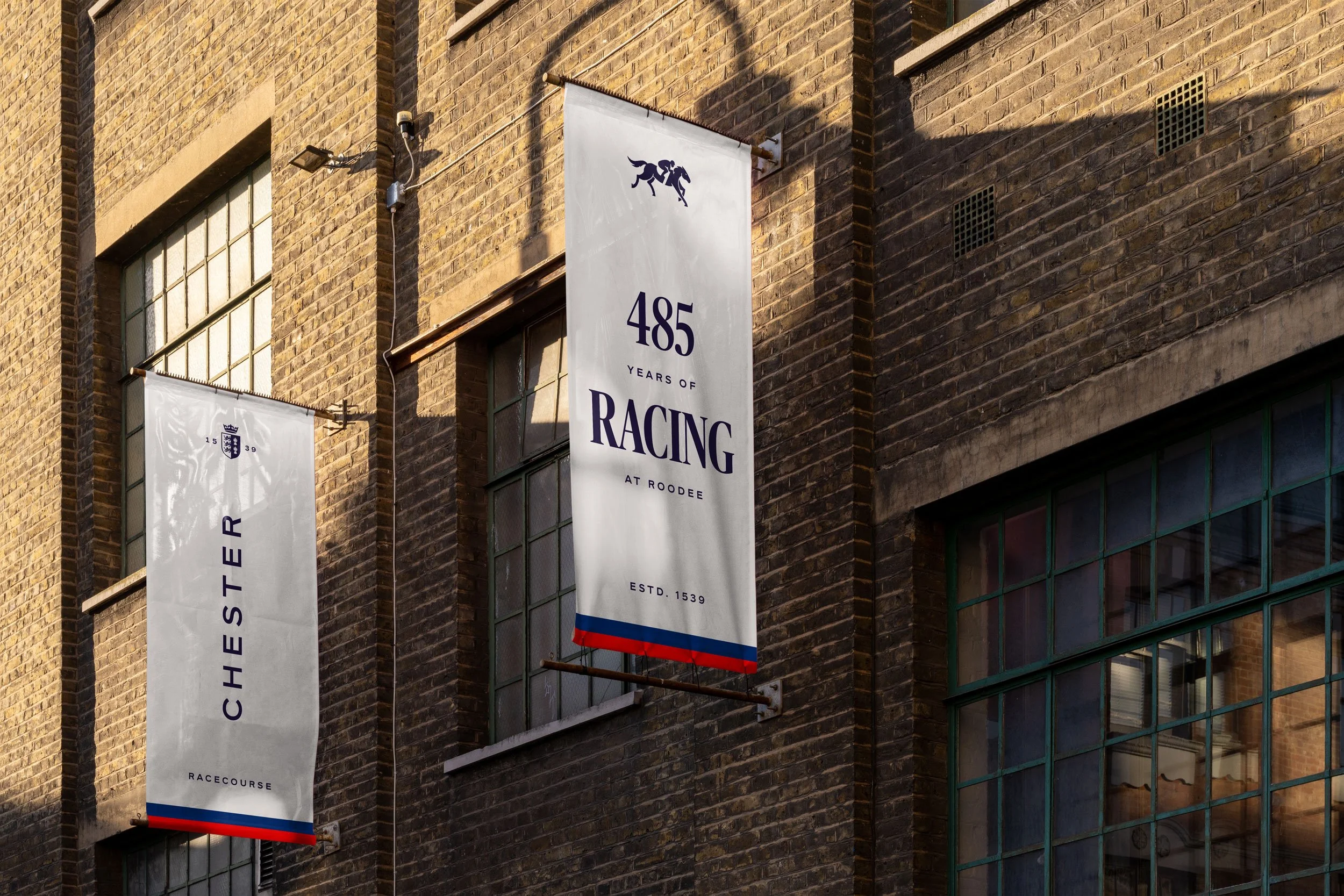 We refined the Chester Racecourse crest with sharper detail for use at any size, and added the date to highlight its long history. We also introduced the ribbon, drawn from the crest’s red and blue halves, as a simple, elegant graphic device. Together, these create a modern identity that remains true to the racecourse’s heritage and prestige.