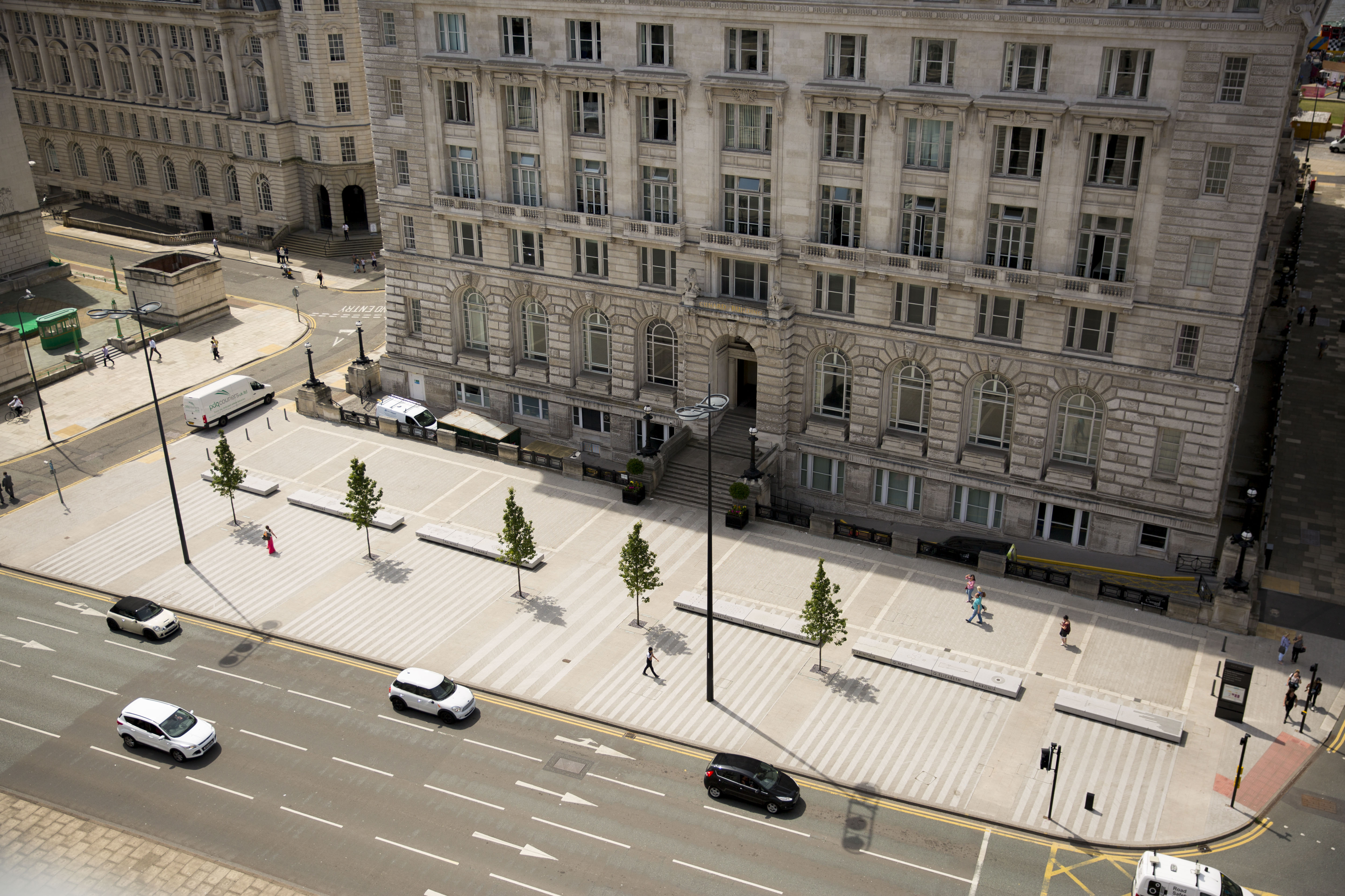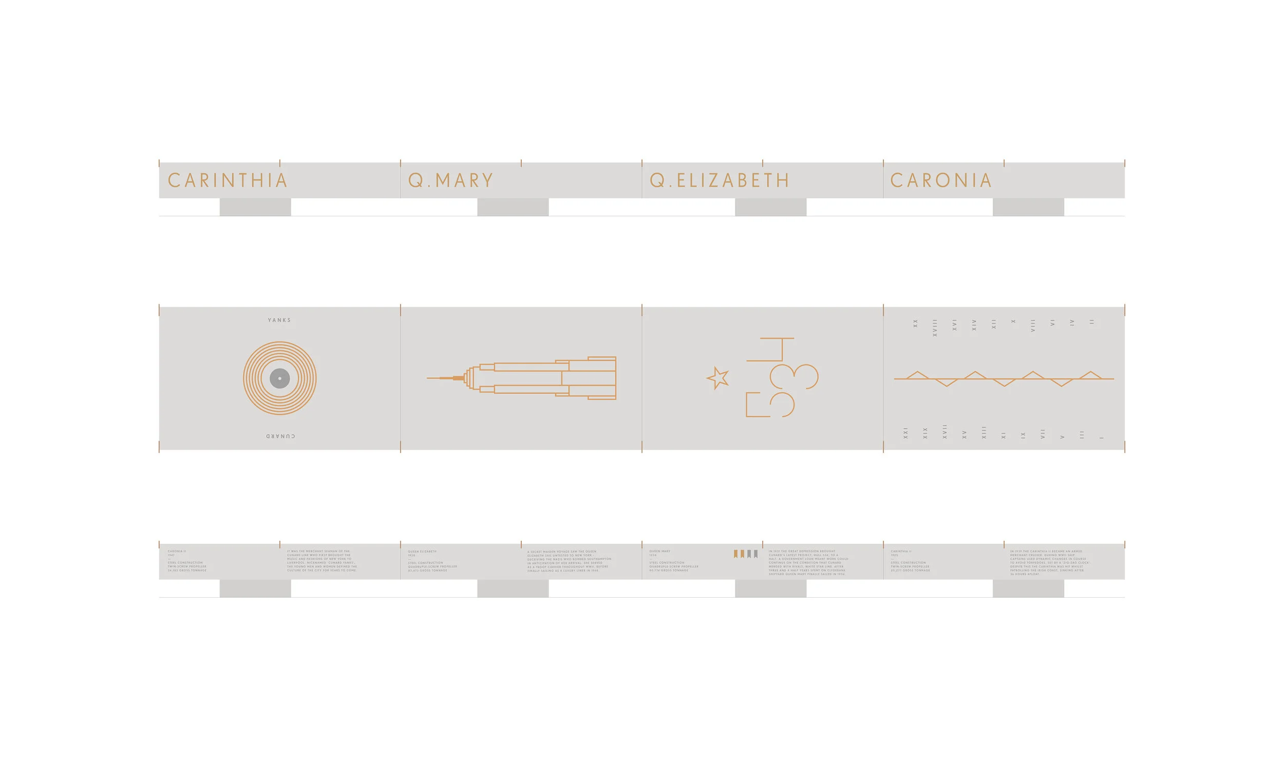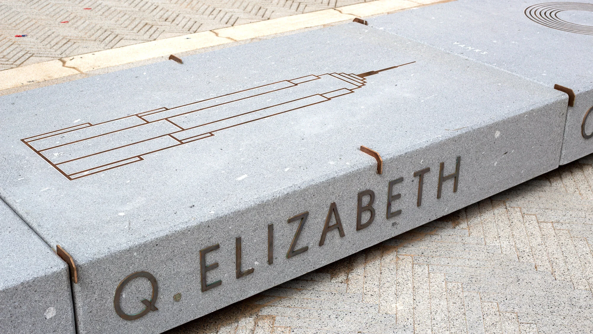 The concept takes inspiration from the elegant Cunard Building using a combination of Art Deco influenced motifs and contemporary typography. This combination has created an engaging tactile tapestry, running across the tops of the benches, with the sides being adorned with some of the most famous ship names.
