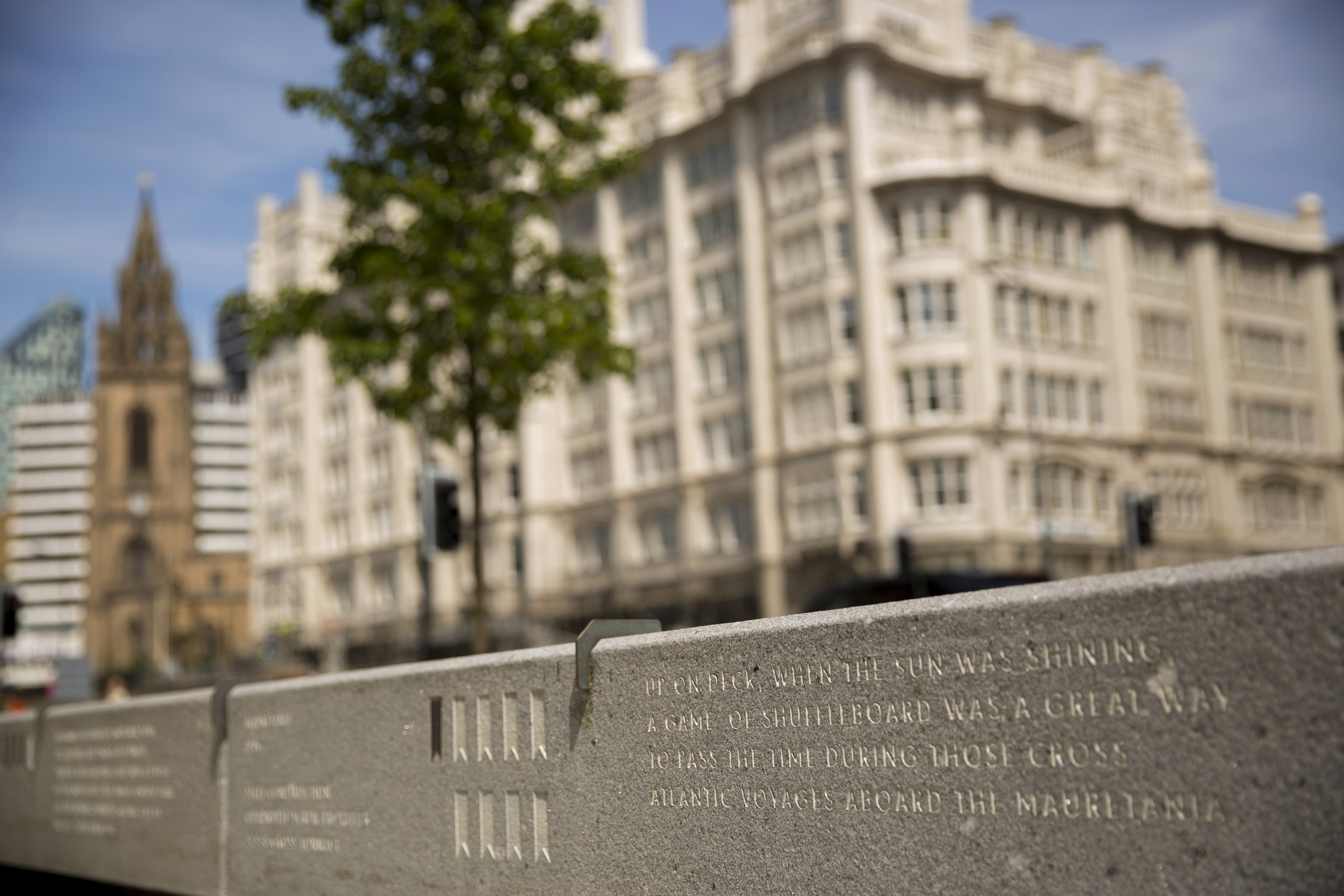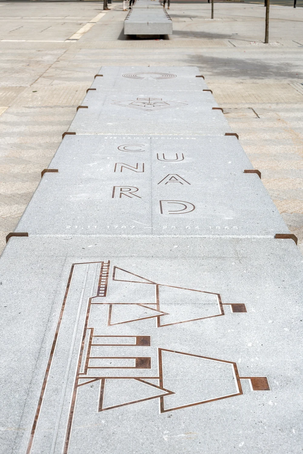 The Voyage was commissioned in collaboration with our old friends BCA Landscape to celebrate the 100th anniversary of Liverpool’s Cunard Building and the transatlantic travel that helped shape the city's culture. This epically scaled series of public stone seats are over 50m long, stretching the full length of the Cunard building, was officially launched on 2 July 2016 by the Captain of 'Queen Elizabeth', Inger Klein Olsen (first ever female captain of a Cunard ship). The Voyage features artwork with beautiful and unique bronze illustrations and typography inspired by the fascinating history of Cunard.