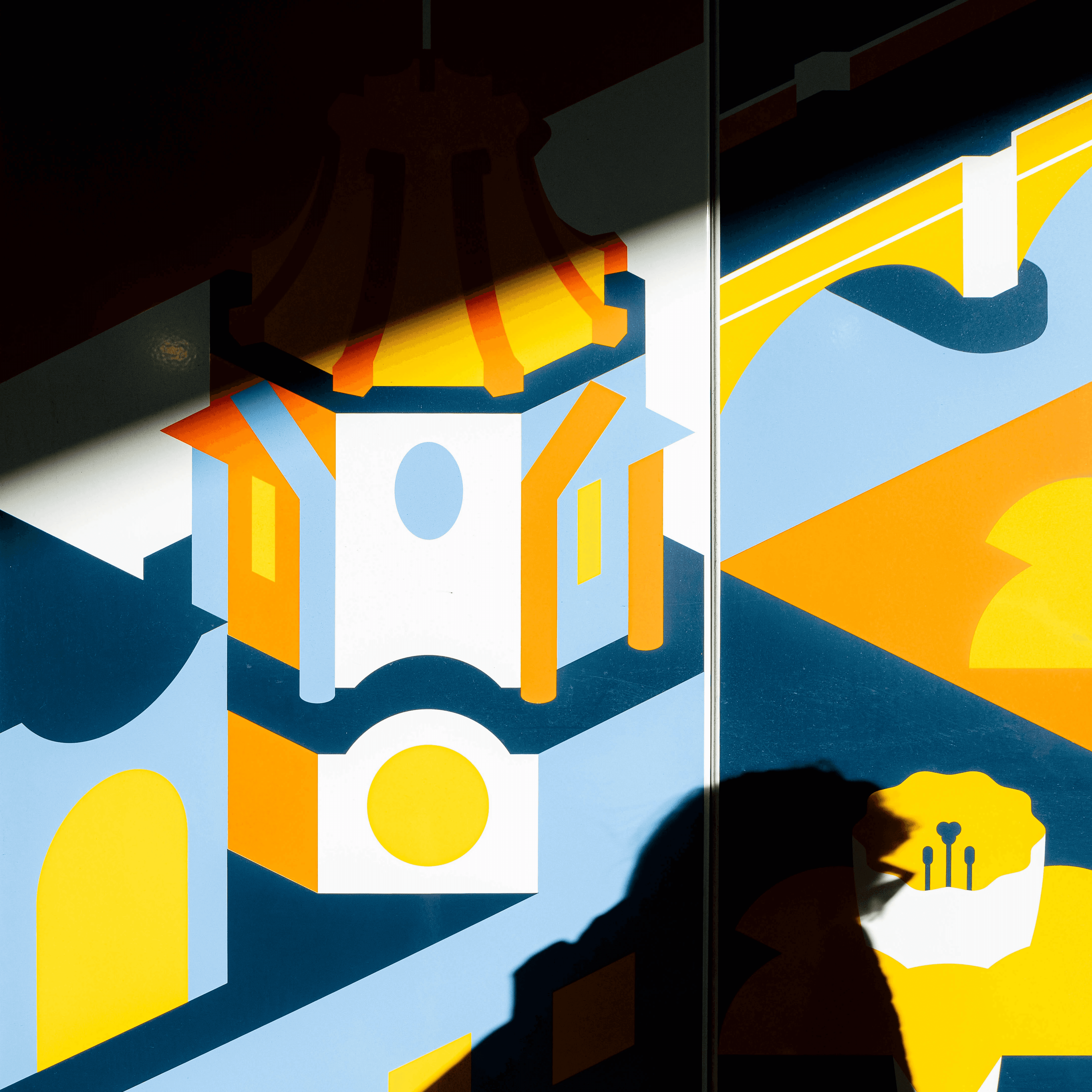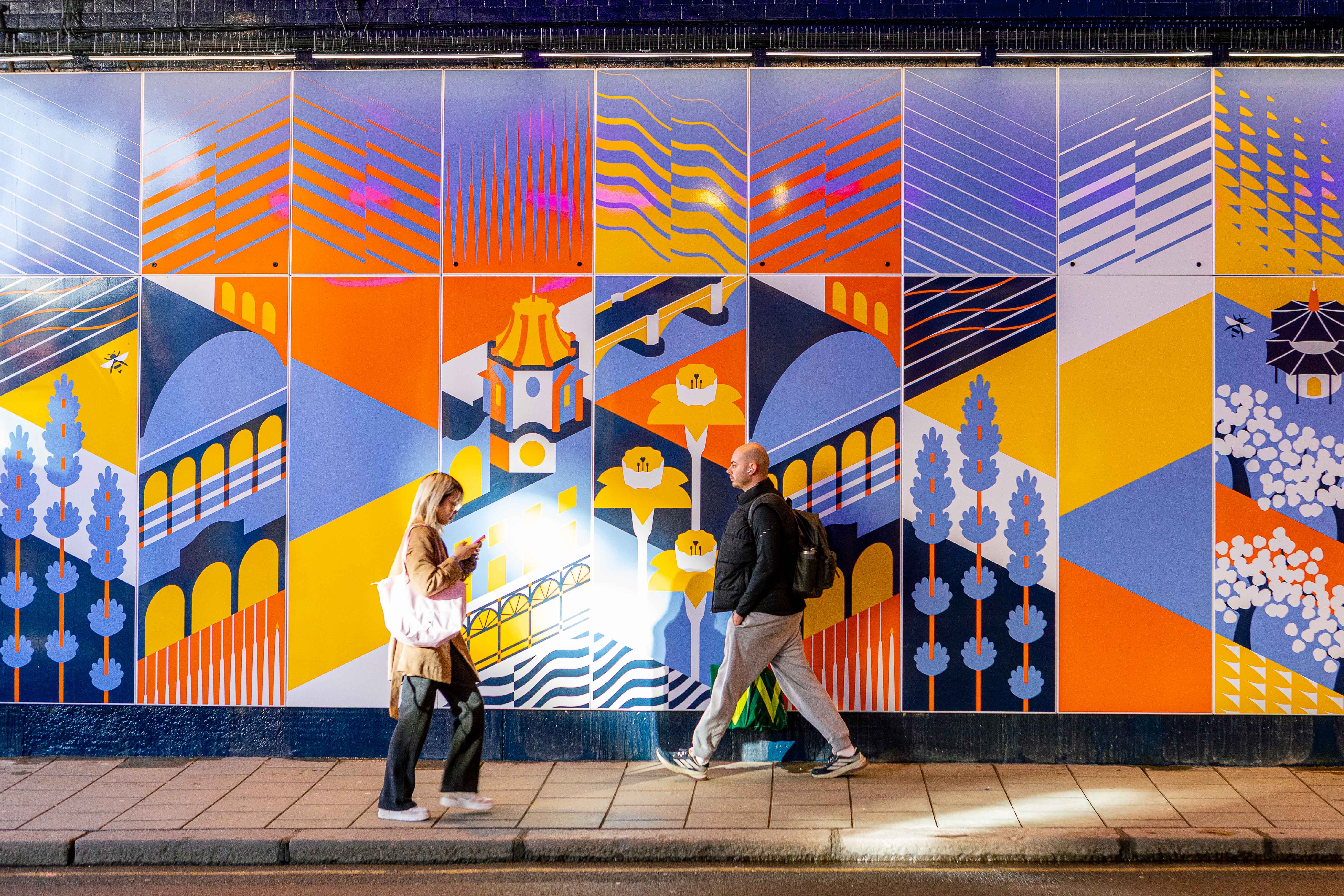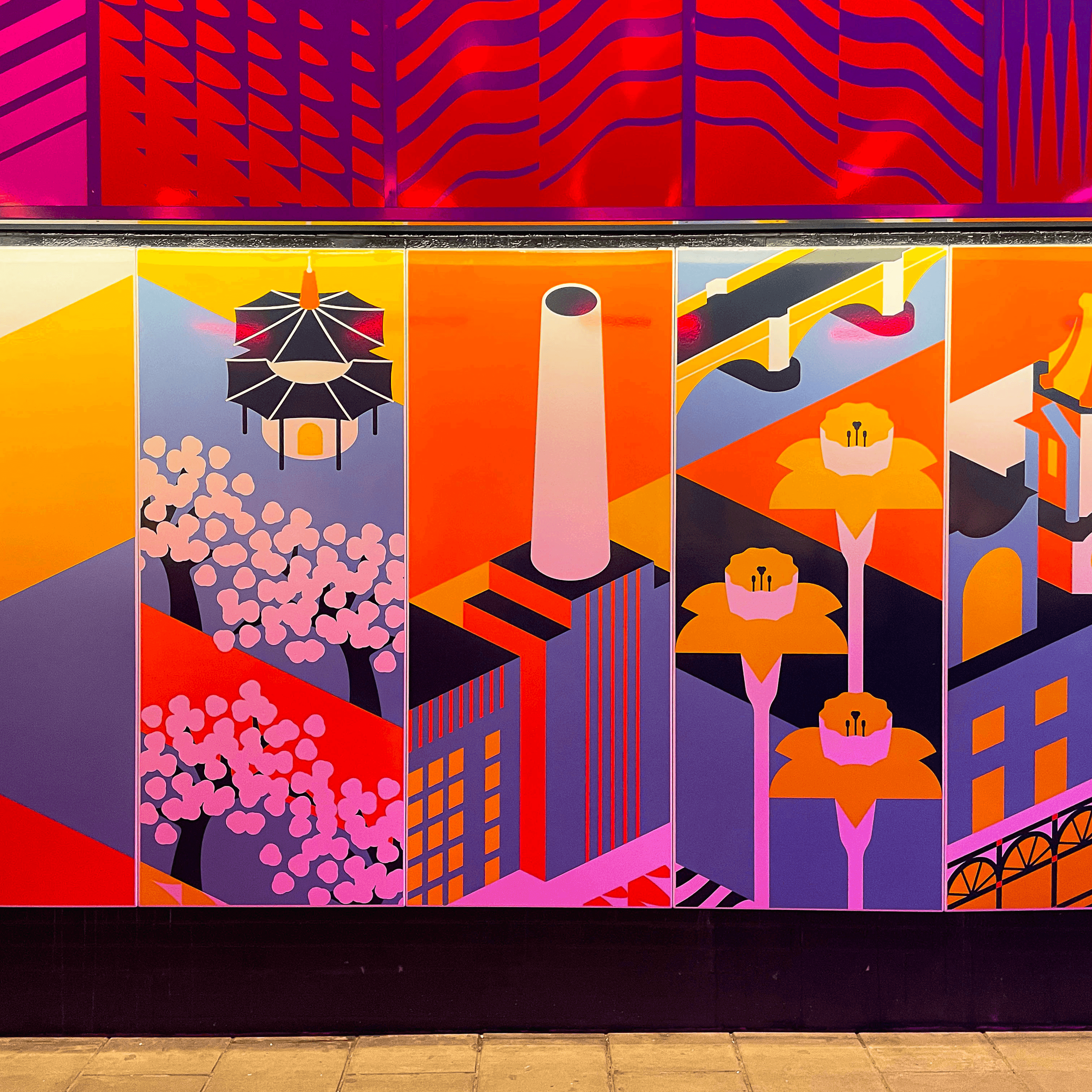 Through community engagement and co-design sessions we developed a distinctive isometric illustration style that captures the areas history and icon landmarks. The set of 6 designs adorn over 400 vitreous enamel panels that run the length of the underpass. The panels were designed to be remixed in different arrangements, creating new and unexpected visual connections.