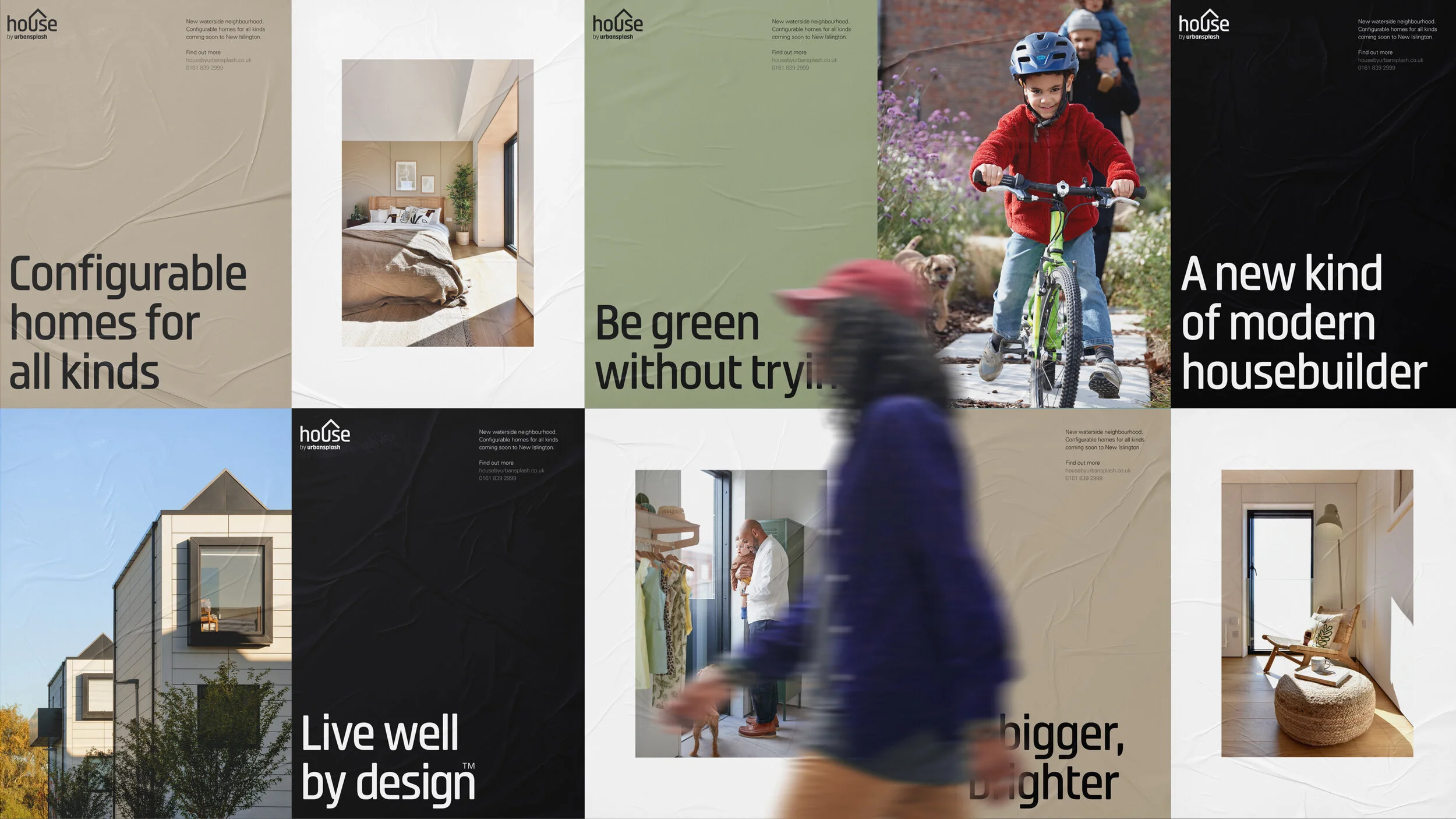 House set out to rethink how homes are made – pairing Urban Splash’s pioneering spirit with Sekisui House and Homes England to deliver beautiful, energy-efficient homes in green, characterful neighbourhoods. We supported the ambition with a two-year programme of brand work: sub-brand strategy, partner and place-making identities, design guides for key applications, and a flexible design framework for the website.