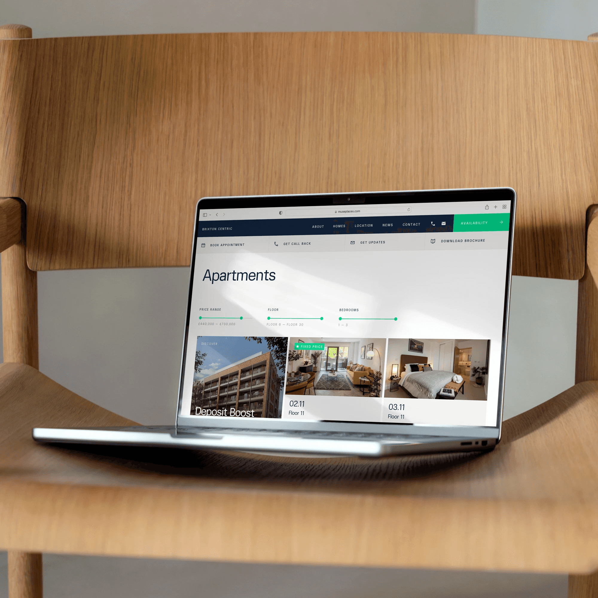 Alongside the core Muse website, we built a suite of flexible platforms for residential and commercial developments, a bespoke consultation platform to gather feedback from local communities, and a homeowners portal. All of these sit within a shared digital design system, ensuring every touchpoint feels distinctly Muse.