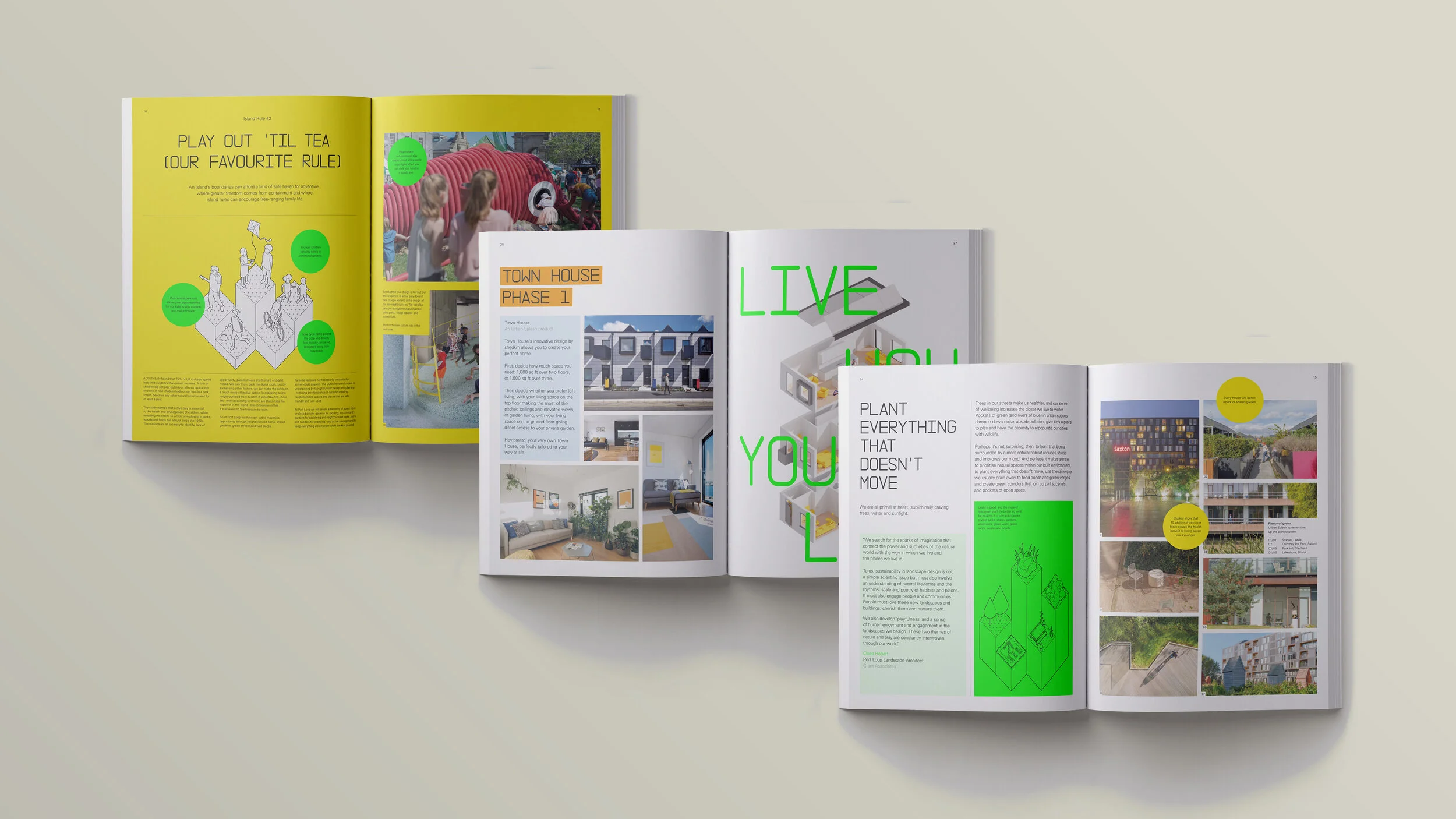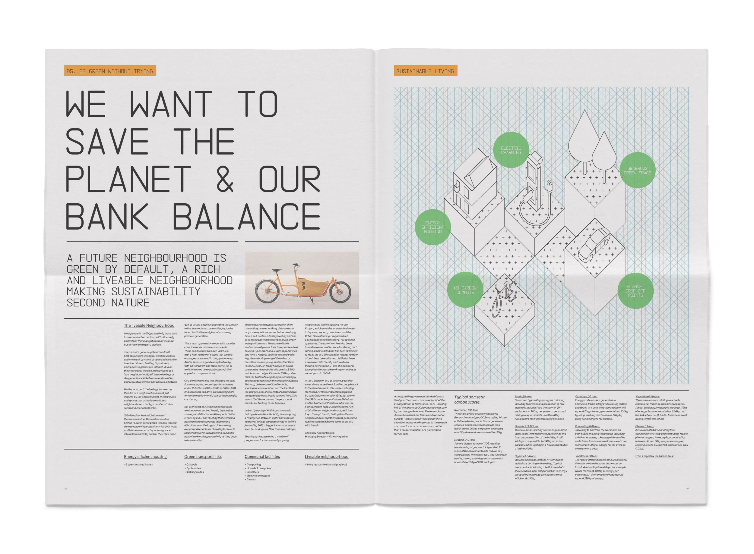 Collaborating with Miles Falkingham, we first developed a manifesto that raised the bar on expectations for new ways of living, a powerful tool that galvanised the community, design teams and partners alike. Using the manifesto as a cornerstone for our ideas we built the visual identity to reflect a forward looking, optimistic and tech happy outlook.